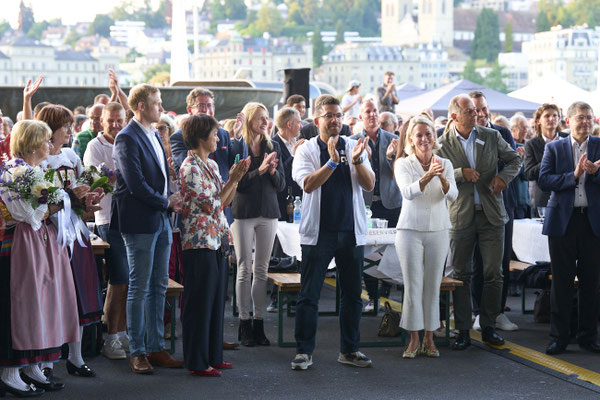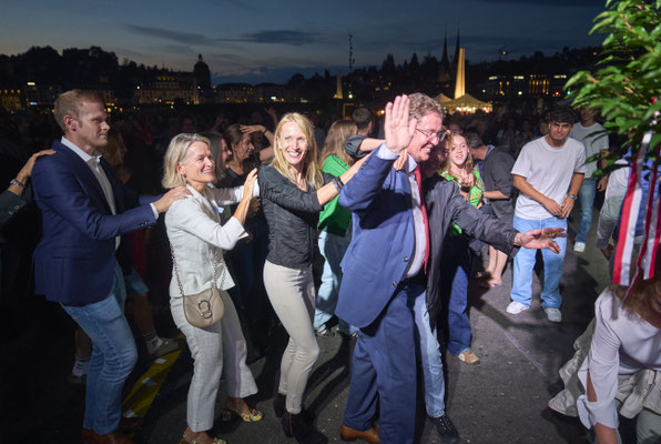 Danach ging das Fest mit Musik und Tanz weiter, mit DJ Maik Wisler. Mitten drin Luzernerinnen und Luzerner, Gäste aus dem In- und Ausland. Auch viele politische Vertreterinnen und Vertreter feierten mit: Ständerätin und Vereinspräsidentin Andrea Gmür, Kantonsratspräsidentin Gisela Widmer, Regierungspräsidentin Michaela Tschuor, Ständerat Damian Müller und Stadtrat Marco Baumann.